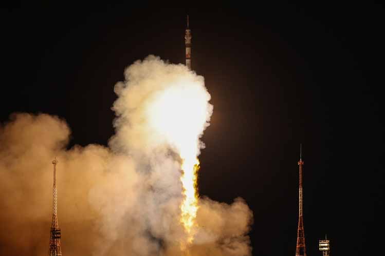 Ένας ρωσικός πύραυλος Σογιούζ, εκτοξεύτηκε σήμερα μεταφέροντας δύο Ρώσους κοσμοναύτες και μια Αμερικανίδα αστροναύτισσα στον Διεθνή Διαστημικό Σταθμό (ISS), μια σπάνια πλέον, εν μέσω κλιμακούμενων εντάσεων, συνεργασία των ΗΠΑ με τη Ρωσία.