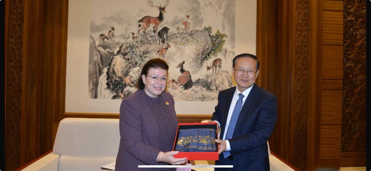 Η Υπουργός εξήρε το υψηλό επίπεδο που χαρακτηρίζει τις πολιτιστικές σχέσεις ανάμεσα τις δύο χώρες και οι οποίες έχουν οδηγήσει στην παραγωγή απτών αποτελεσμάτων. Η Λίνα Μενδώνη υπογράμμισε τη δυνατότητα εμβάθυνσης, ανάπτυξης και εξέλιξης της πολιτιστικής συνεργασίας, καθώς οι δύο χώρες δικαιωματικά κατέχουν κορυφαία θέση στο διάλογο των πολιτισμών, δίνοντας έμφαση στην αμοιβαία επωφελή προαγωγή της συνεργασίας στο πλαίσιο διεθνών οργανισμών, όπως η UNESCO. Ελλάδα και Λαϊκή Δημοκρατία της Κίνας έχουν κυρώσει τις συμβάσεις της UNESCO για την προστασία των πολιτιστικών αγαθών, της πολιτιστικής πολυμορφίας, της άυλης πολιτιστικής κληρονομιάς και μπορούν να εντείνουν τη συνεργασία τους στους τομείς αυτούς και ιδίως στο ζήτημα του επαναπατρισμού παρανόμως διακινηθέντων πολιτιστικών αγαθών και του παράνομου εμπορίου αρχαιοτήτων.