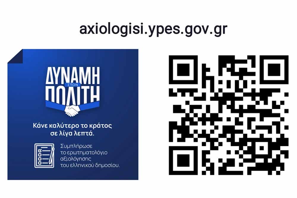 Μέσω του axiologisi.ypes.gov.gr,για πρώτη φορά στην ιστορία της Δημόσιας Διοίκησης οι πολίτες έχουν την ευκαιρία να αξιολογούν ηλεκτρονικά, άμεσα και ανεμπόδιστα τις υπηρεσίες που προσφέρονται από την Κεντρική Κυβέρνηση και την Τοπική Αυτοδιοίκηση. Το σχετικό ερωτηματολόγιο αποτελείται από περίπου 50 ερωτήσεις και καλύπτει σχεδόν 45 υπηρεσίες και φορείς.
