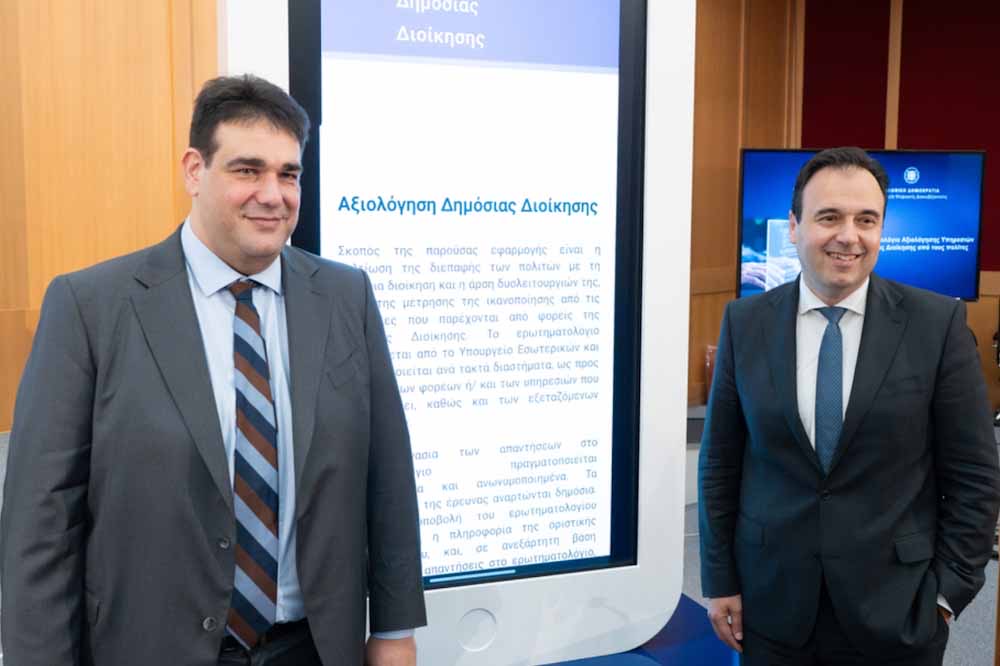 Το «Ερωτηματολόγιο Αξιολόγησης Υπηρεσιών Δημόσιας Διοίκησης από τους πολίτες», μια καινοτόμος υπηρεσία που δημιουργήθηκε από τη συνεργασία του υπουργείου Εσωτερικών και του υπουργείου Ψηφιακής Διακυβέρνησης, με στόχο την ενεργό συμμετοχή των πολιτών στη βελτίωση της καθημερινότητάς τους, παρουσιάστηκε σήμερα από τον υπουργό Εσωτερικών, Θοδωρή Λιβάνιο και τον υπουργό Ψηφιακής Διακυβέρνησης, Δημήτρη Παπαστεργίου.