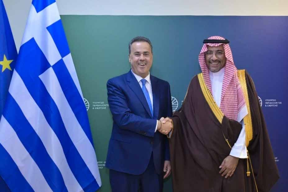 Τον Υπουργό Βιομηχανίας και Ορυκτών Πόρων του Βασιλείου της Σαουδικής Αραβίας, κ. Bandar bin Ibrahim Al-Khorayef, υποδέχτηκαν σήμερα ο Υπουργός Περιβάλλοντος και Ενέργειας, κ. Σταύρος Παπασταύρου και ο Υφυπουργός κ. Νίκος Τσάφος, στο πλαίσιο της ενίσχυσης των στρατηγικών ενεργειακών σχέσεων μεταξύ των δύο χωρών.