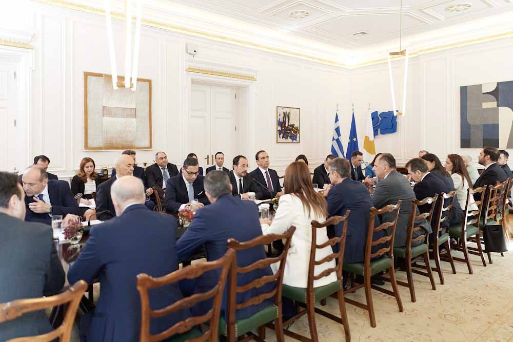 «Σε ένα περιβάλλον γεωπολιτικών ανατροπών, αβεβαιότητας και αστάθειας ο Πρωθυπουργός Κυριάκος Μητσοτάκης και ο Πρόεδρος Νίκος Χριστοδουλίδης επαναβεβαίωσαν τον κρίσιμο ρόλο των Διακυβερνητικών Συνόδων, για την έτι περαιτέρω ενδυνάμωση της συνεργασίας Ελλάδας και Κύπρου και τη συμβολή στη διασφάλιση της σταθερότητας στην Ανατολική Μεσόγειο» αναφέρει μεταξύ άλλων το κοινό ανακοινωθέν και προσθέτει: «Το πλαίσιο της διμερούς συνεργασίας είναι ευρύ και πολυεπίπεδο, καλύπτοντας θεσμικούς, αμυντικούς, οικονομικούς, ενεργειακούς και εκπαιδευτικούς τομείς. Εμβαθύνεται διαρκώς, ανταποκρινόμενο στις σύγχρονες προκλήσεις, με αποτελέσματα που έχουν πρακτικό αντίκτυπο στην καθημερινότητα των πολιτών και στη σχέση τους με το κράτος».