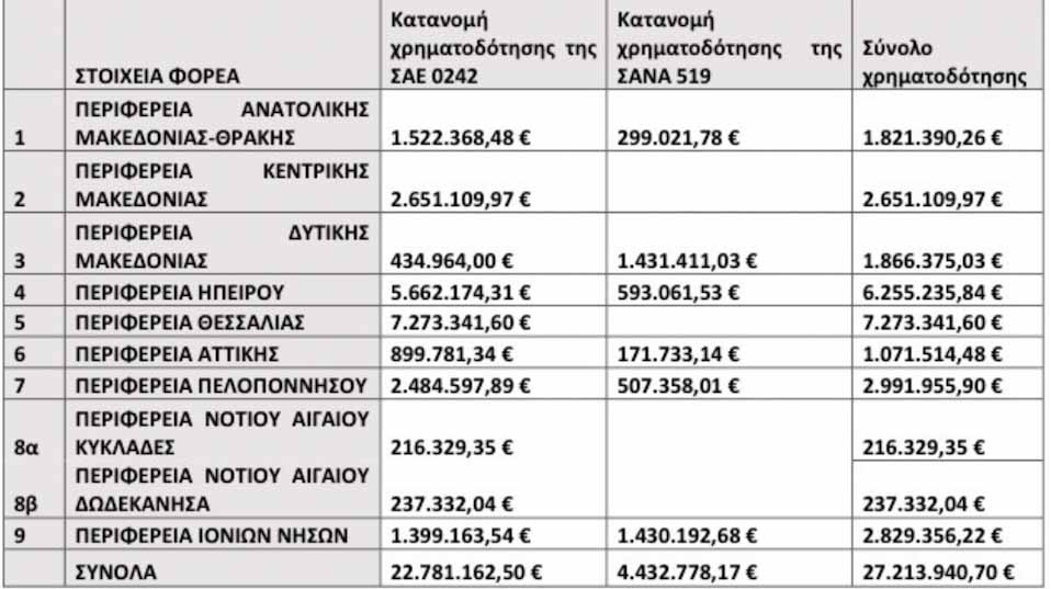 Αναλυτικά η κατανομή των χρημάτων στις Περιφέρειες: