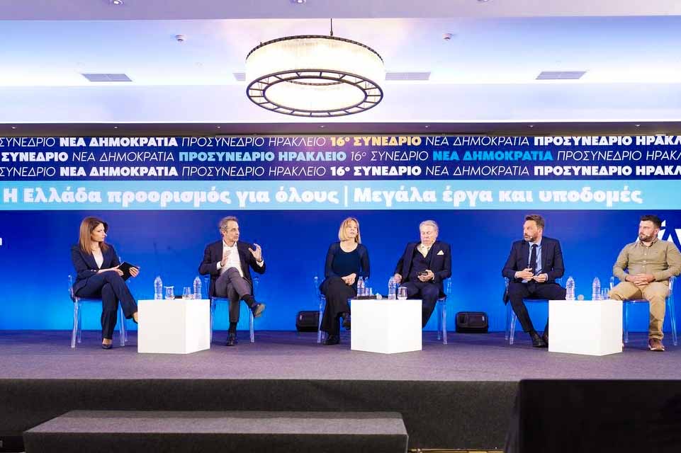 Ο Πρωθυπουργός και Πρόεδρος της Νέας Δημοκρατίας Κυριάκος Μητσοτάκης συμμετείχε σε συζήτηση με τον Δήμαρχο Χάλκης Ευάγγελο Φραγκάκη, τον Πρόεδρο της Κοινότητας Φόδελε Χαράλαμπο Παντερή, την Έφορο Αρχαιοτήτων Χανίων Ελένη Παπαδοπούλου και τον Πρόεδρο του Συνδέσμου Τουριστικών και Ταξιδιωτικών Πρακτόρων Κρήτης Μιχάλη Βλατάκη, στο πλαίσιο του προσυνεδρίου της Νέας Δημοκρατίας στο Ηράκλειο, με θέμα «Ελλάδα προορισμός για όλους – Μεγάλα έργα και υποδομές». Τη συζήτηση συντόνισε η δημοσιογράφος Νικολέτα Σφακιανάκη.
