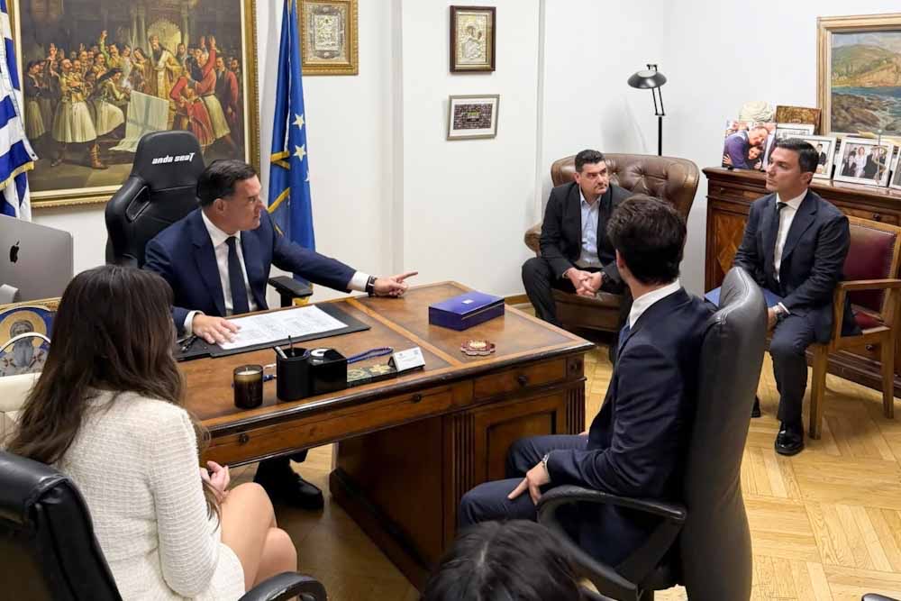 Ο Υπουργός Υγείας Άδωνις Γεωργιάδης υποδέχτηκε σήμερα, Δευτέρα, 24 Νοεμβρίου 2025, την Πρέσβη των Ηνωμένων Πολιτειών στην Ελλάδα, Kimberly Ann Guilfoyle με την οποία παρουσίασαν από κοινού Συνέντευξη Τύπου για την έναρξη της συνεργασίας μεταξύ της αμερικανικής εταιρίας «Sword Health» και του Υπουργείου Υγείας για τη δημιουργία μιας από τις πρώτες «έξυπνες» εισόδους στο Εθνικό Σύστημα Υγείας, βασισμένη σε εργαλεία τεχνητής νοημοσύνης. Στη Συνέντευξη Τύπου συμμετείχε ο Ιδρυτής και CEO της «Sword Health» Virgilio Bento,ενώ την παρουσίαση ανέλαβε ο Γενικός Διευθυντής της «Sword Intelligence» Ed Buckley.