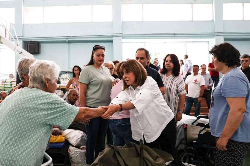 Επίσης, η Πρόεδρος της Δημοκρατίας Κατερίνα Σακελλαροπούλου μετέβη την Κυριακή, στις πληγείσες από τις πλημμύρες περιοχές της Καρδίτσας και του Βόλου.