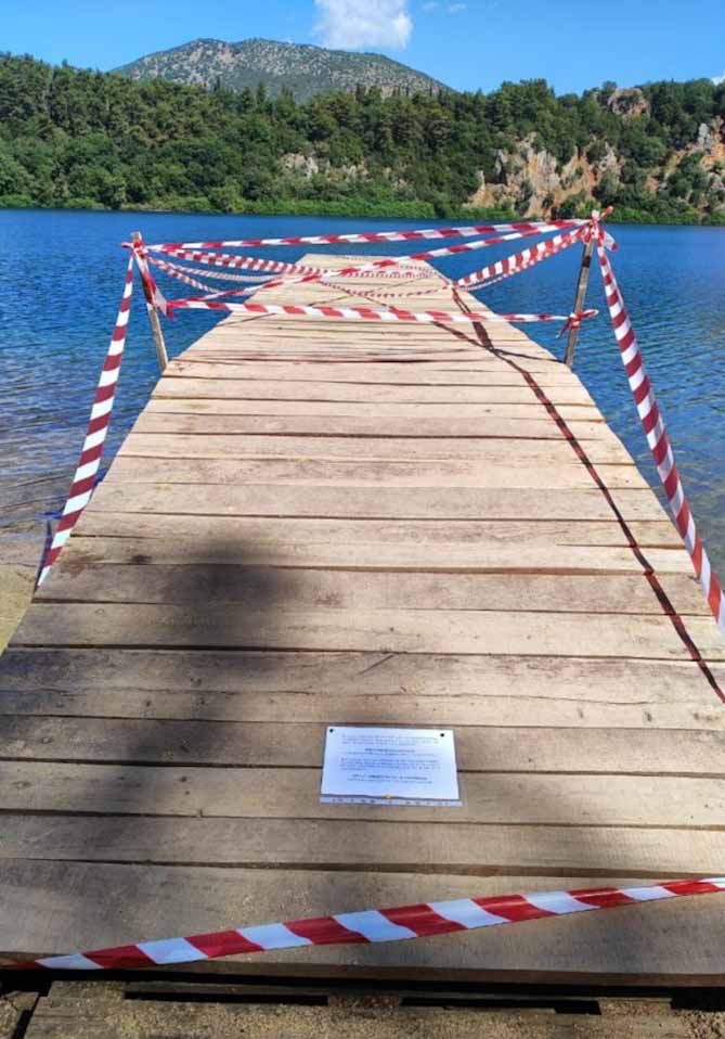 Πιο αναλυτικά, κατά την αυτοψία του μεικτού ελεγκτικού κλιμακίου διαπιστώθηκε η ύπαρξη αυθαίρετων καταλήψεων τριών τμημάτων εντός των υδάτων και της όχθης της λίμνης με πρόχειρες ξύλινες κατασκευές (προβλήτα κ.ά.) συνολικού εμβαδού 120 τετραγωνικών μέτρων για χρήση κανό-καγιάκ.