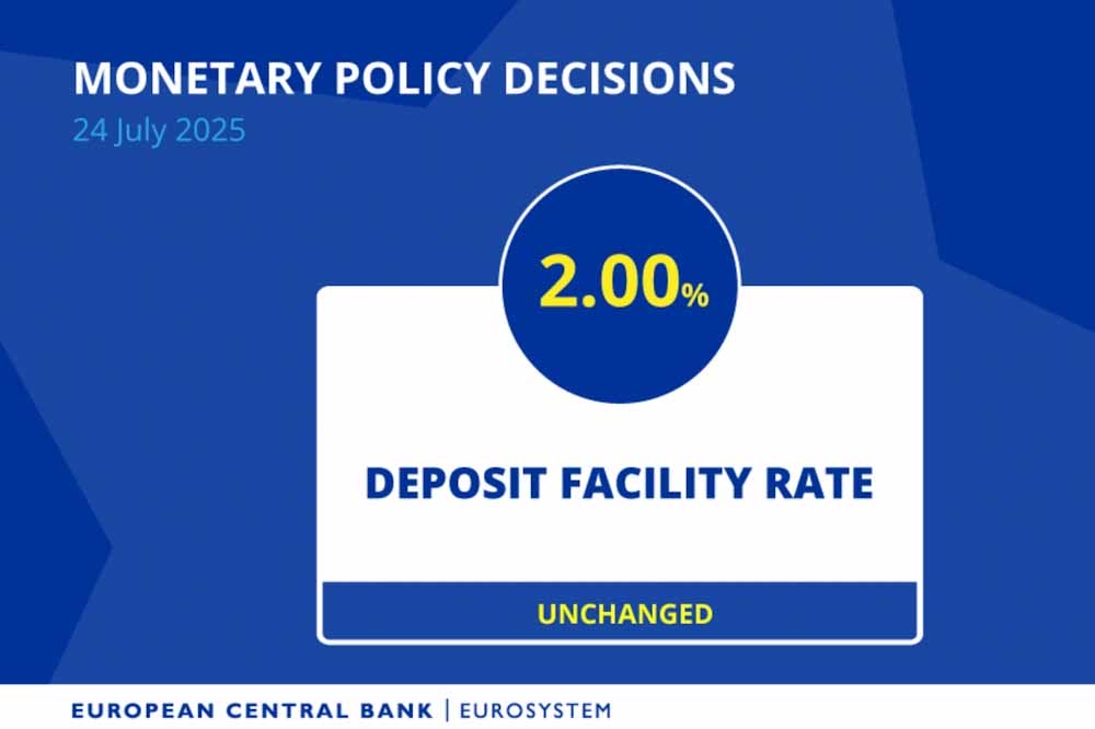 Όπως ανακοίνωσε η ΕΚΤ η απόφαση να διατηρήσει αμετάβλητα τα επιτόκια συνδέεται με την επίτευξη του στόχου του πληθωρισμού στο 2%. Σε γενικές γραμμές τα νέα δεδομένα ευθυγραμμίζονται με την προηγούμενη αξιολόγηση του Διοικητικού Συμβουλίου σχετικά με τις προοπτικές τού πληθωρισμού. Οι εγχώριες πιέσεις στις τιμές συνέχισαν να μετριάζονται, με τους μισθούς να αυξάνονται με βραδύτερο ρυθμό. Αντανακλώντας εν μέρει τις προηγούμενες μειώσεις των επιτοκίων από το Διοικητικό Συμβούλιο, η οικονομία έχει μέχρι στιγμής αποδειχθεί συνολικά ανθεκτική σε ένα δύσκολο παγκόσμιο περιβάλλον. Ταυτόχρονα, το περιβάλλον παραμένει εξαιρετικά αβέβαιο, ιδίως λόγω εμπορικών διαφορών.