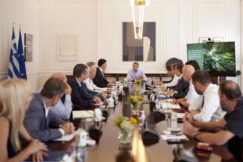 Σύσκεψη υπό τον Πρωθυπουργό Κυριάκο Μητσοτάκη, για τη λήψη άμεσων μέτρων στον Έβρο και στην Πάρνηθα πραγματοποιήθηκε σήμερα στο Μέγαρο Μαξίμου.