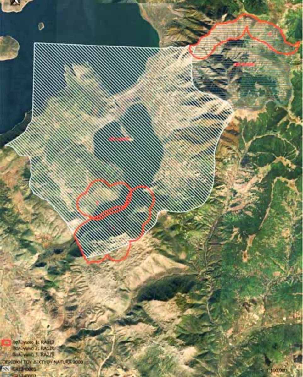 Χάρτης 1: Περιοχή άνευ δρόμων στην περιοχή των Πρεσπών