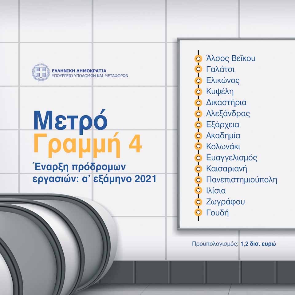 Ο κ. Καραμανλής αναφέρθηκε ειδικότερα στη Γραμμή 4 του Μετρό, που επιτέλους «ξεμπλόκαρε» και οι πρόδρομες εργασίες για την οποία θα ξεκινήσουν εντός του 2021. Πρόσθεσε ότι το επόμενο βήμα είναι η επέκταση της Γραμμής 4 από το άλσος Βεϊκου μέχρι τα Πευκάκια, ώστε να ενώνεται με τη Γραμμή 1 του ΗΣΑΠ. Και ανακοίνωσε ότι έχουν ολοκληρωθεί οι τοπογραφικές και γεωτεχνικές μελέτες, δηλαδή έχει γίνει το πρώτο βήμα, για την επέκταση του Μετρό από την Κατεχάκη κατά μήκος της Κηφισίας, που θα περνά από το Φάρο Φιλοθέης, το Χαλάνδρι, το Ολυμπιακό Στάδιο στο Μαρούσι και θα φτάνει στην Πεύκη. Τον προηγούμενο μήνα μάλιστα ξεκίνησαν και οι τοπογραφικές μελέτες.