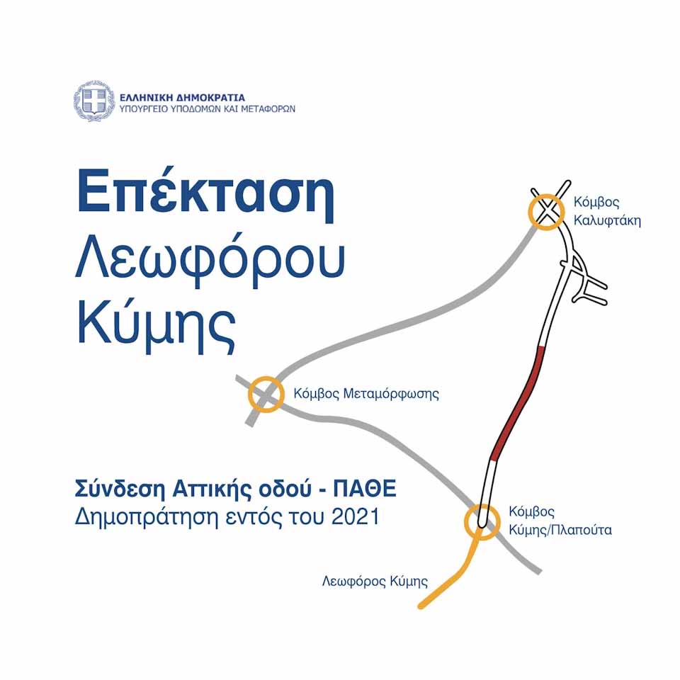 Ο κ. Καραμανλής αναφέρθηκε επίσης στην επέκταση της Λεωφόρου Κύμης, που θα συνδέει την Αττική Οδό με την Εθνική Οδό. Υπογράμμισε ότι το έργο αυτό θα δημοπρατηθεί εντός του 2021 και πως δεν θα υπάρχουν διόδια, καθώς δεν θα ενταχθεί στην Αττική Οδό, αλλά θα είναι ένα ξεχωριστό δημόσιο έργο, που θα προταθεί για χρηματοδότηση από την Ευρωπαϊκή Ένωση.