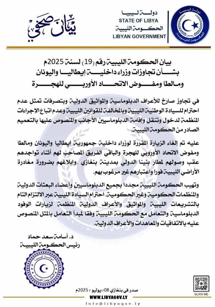 Δήλωση της λιβυκής κυβέρνησης αριθ. (19) του έτους 2025