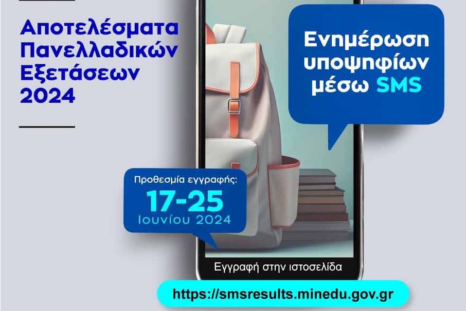 Τα Υπουργεία Παιδείας, Θρησκευμάτων και Αθλητισμού και Ψηφιακής Διακυβέρνησης ανακοινώνουν ότι από σήμερα, Δευτέρα 17 Ιουνίου, είναι ξανά διαθέσιμη η πλατφόρμα smsresults.minedu.gov.gr. Με τη συγκεκριμένη υπηρεσία, όλοι οι υποψήφιοι στις Πανελλαδικές Εξετάσεις ΓΕΛ και ΕΠΑΛ μπορούν να καταχωρίσουν ή να επιβεβαιώσουν τον αριθμό του κινητού τους τηλεφώνου. Με τον τρόπο αυτό, θα ενημερωθούν και με γραπτό μήνυμα (SMS) για: