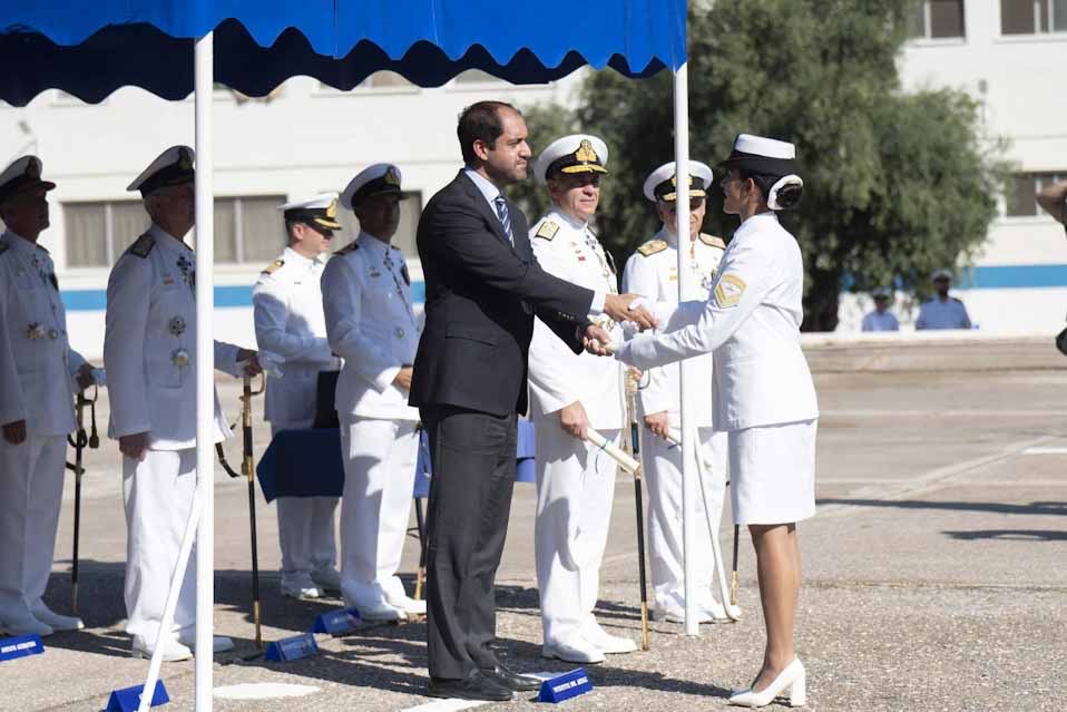«Με ιδιαίτερη χαρά απένειμα σήμερα τα πτυχία κατά την τελετή ορκωμοσίας των νέων Κελευστών της 42ης Σειράς της Σχολής Μονίμων Υπαξιωματικών Ναυτικού. Θα ήθελα να εκφράσω τα θερμά μου συγχαρητήρια στους ορκισθέντες, να τους ευχηθώ καλή σταδιοδρομία και να τους προτρέψω να συνεχίσουν να αναβαθμίζουν το γνωστικό τους υπόβαθρο και την στρατηγική τους αντίληψη. Ως Υπουργείο Εθνικής Άμυνας, θα συνεχίσουμε να είμαστε δίπλα στις γυναίκες και τους άνδρες του ένδοξου Πολεμικού μας Ναυτικού, αποδεικνύοντας έμπρακτα την εμπιστοσύνη και την ευγνωμοσύνη της Πολιτείας στους άγρυπνους φύλακες του ελληνικού θαλάσσιου χώρου. O Άγιος Νικόλαος στην πλώρη σας, καλές θάλασσες»