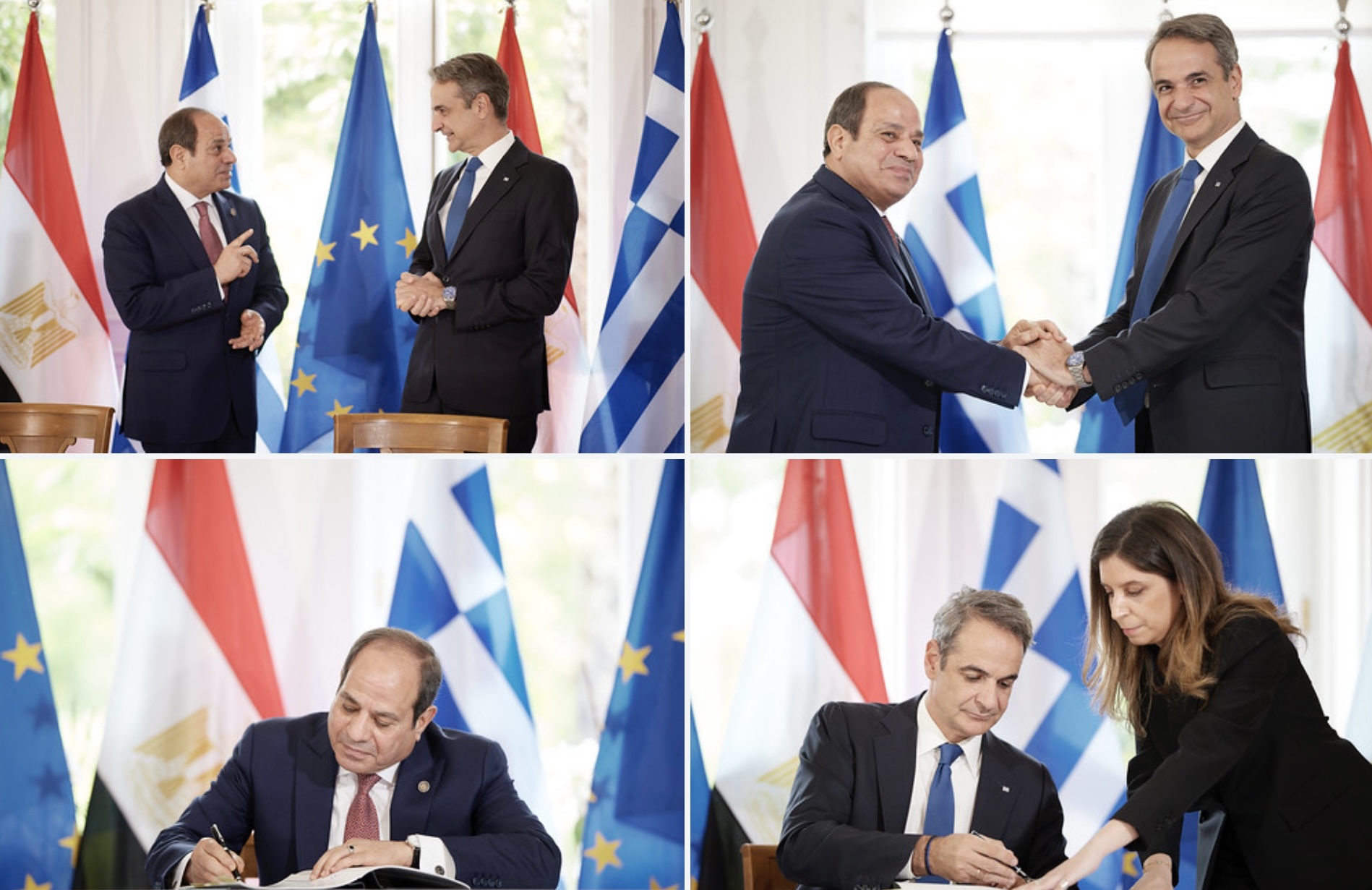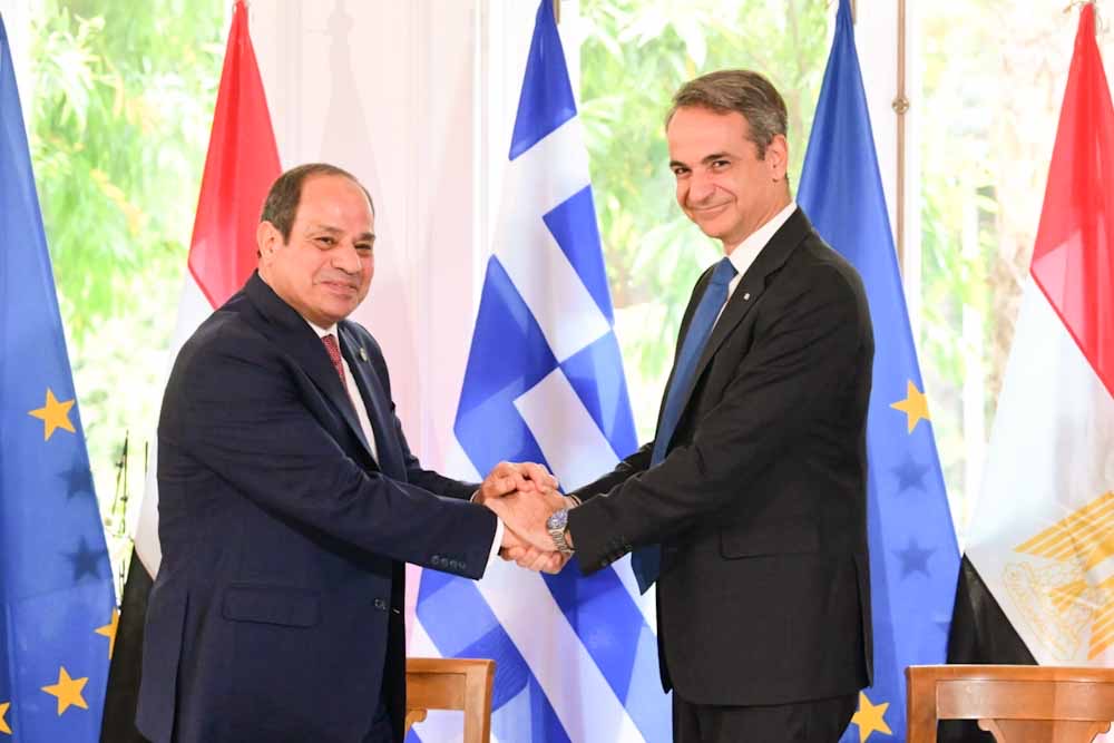Είμαστε στην ίδια όχθη απέναντι στις προκλήσεις της περιοχής, τόνισε ο Κυριάκος Μητσοτάκης, δίνοντας το στίγμα των συνομιλιών. Αναβαθμίζεται και θεσμοθετείται η συνεργασία μεταξύ των δύο χωρών, μετά και τις εργασίες του Ανώτατου Συμβουλίου Συνεργασίας το οποίο συνεδρίασε για πρώτη φορά στην Αθήνα. Ελλάδα και Αίγυπτος ενώνουν τις δυνάμεις τους για τη σταθερότητα στην ευρύτερη περιοχή και την εμπέδωση της ειρήνης και της ασφάλειας.