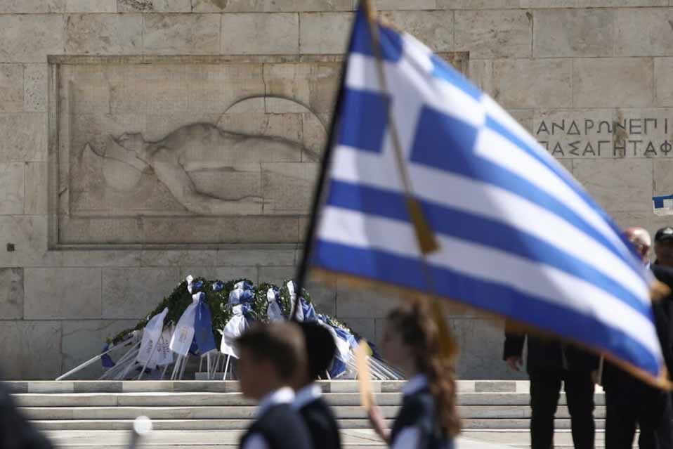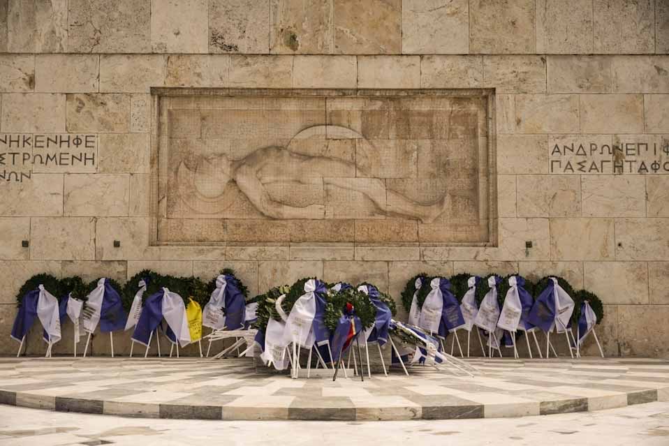 Πριν την έναρξη της παρέλασης έγινε κατάθεση στεφάνων στο Μνημείο του Άγνωστου Στρατιώτη.