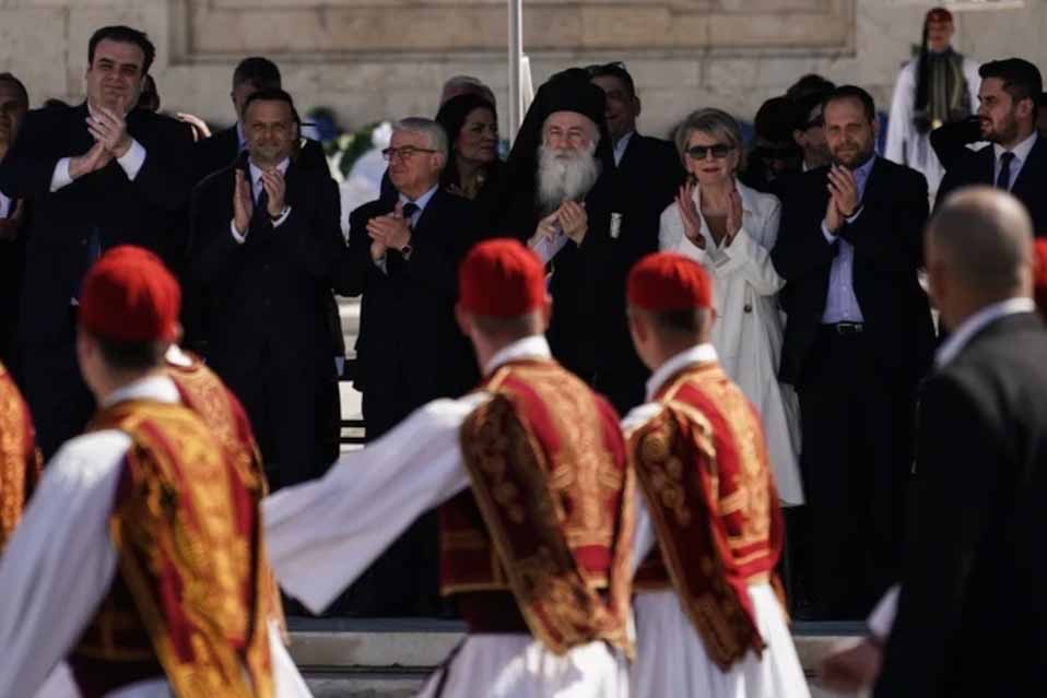Πριν την έναρξη της παρέλασης έγινε κατάθεση στεφάνων στο Μνημείο του Άγνωστου Στρατιώτη.