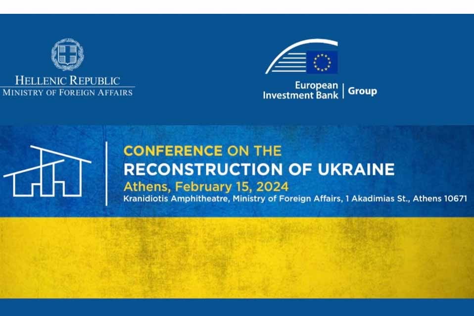 Στην Αθήνα, θα πραγματοποιηθεί το Διεθνές Συνέδριο για την ανοικοδόμηση της Ουκρανίας που διοργανώνει το υπουργείο Εξωτερικών, σε συνεργασία με την Ευρωπαϊκή Τράπεζα Επενδύσεων, στις 15 Φεβρουαρίου 2024 και ώρα 10:00 π.μ.