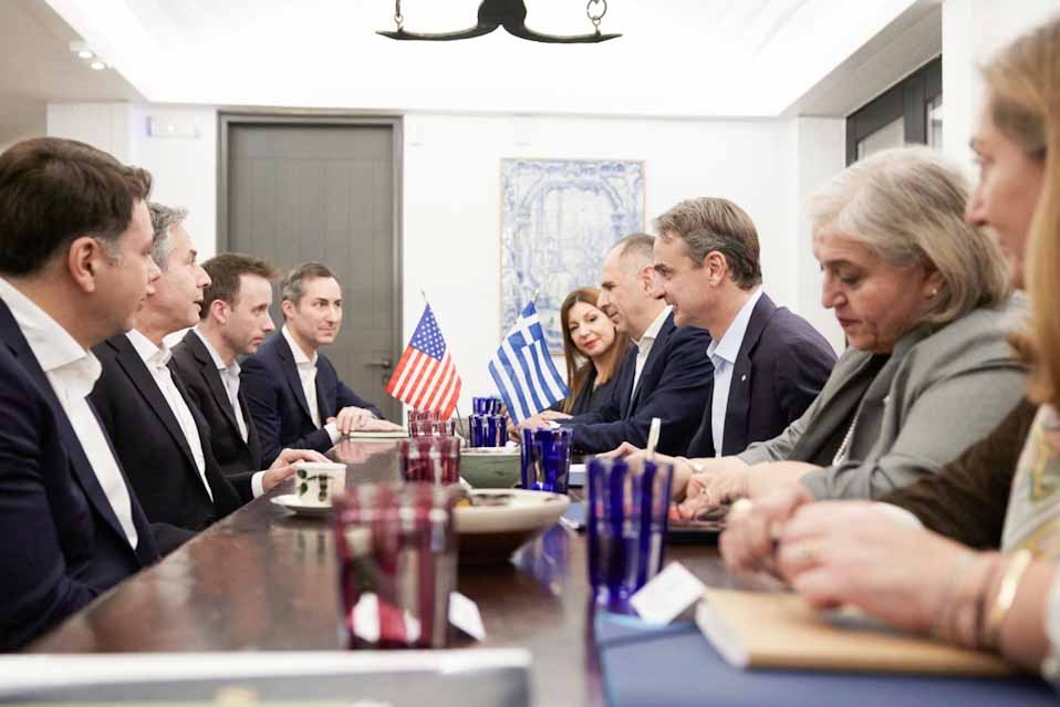 Μετά την κατ’ ιδίαν συνάντηση του Πρωθυπουργού με τον κ. Blinken ακολούθησε συνάντηση εργασίας σε διευρυμένη σύνθεση.