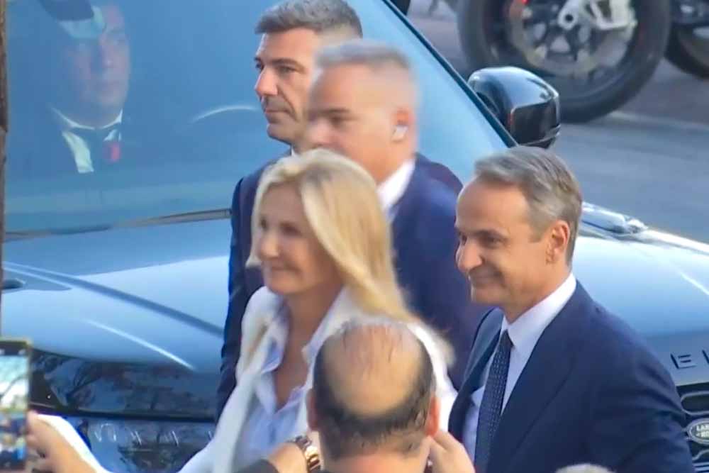 Ο πρωθυπουργός Κυριάκος Μητσοτάκης, συνοδευόμενος από τη σύζυγό του Μαρέβα Γκραμπόφσκι – Μητσοτάκη, έφτασε στο Βελλίδειο Συνεδριακό Κέντρο.