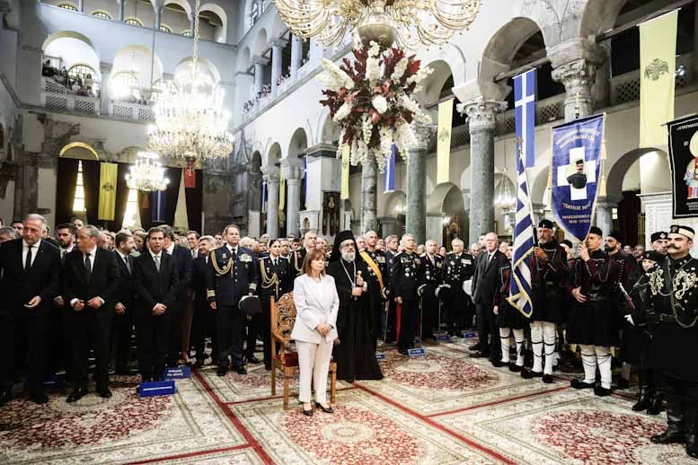 Ο γενικός γραμματέας της Κ.Ο. της Νέας Δημοκρατίας Σταύρος Καλαφάτης, ο οποίος εκπροσώπησε τον πρόεδρο της Βουλής, δήλωσε μετά το τέλος της δοξολογίας στο ναό του Αγίου Δημητρίου: