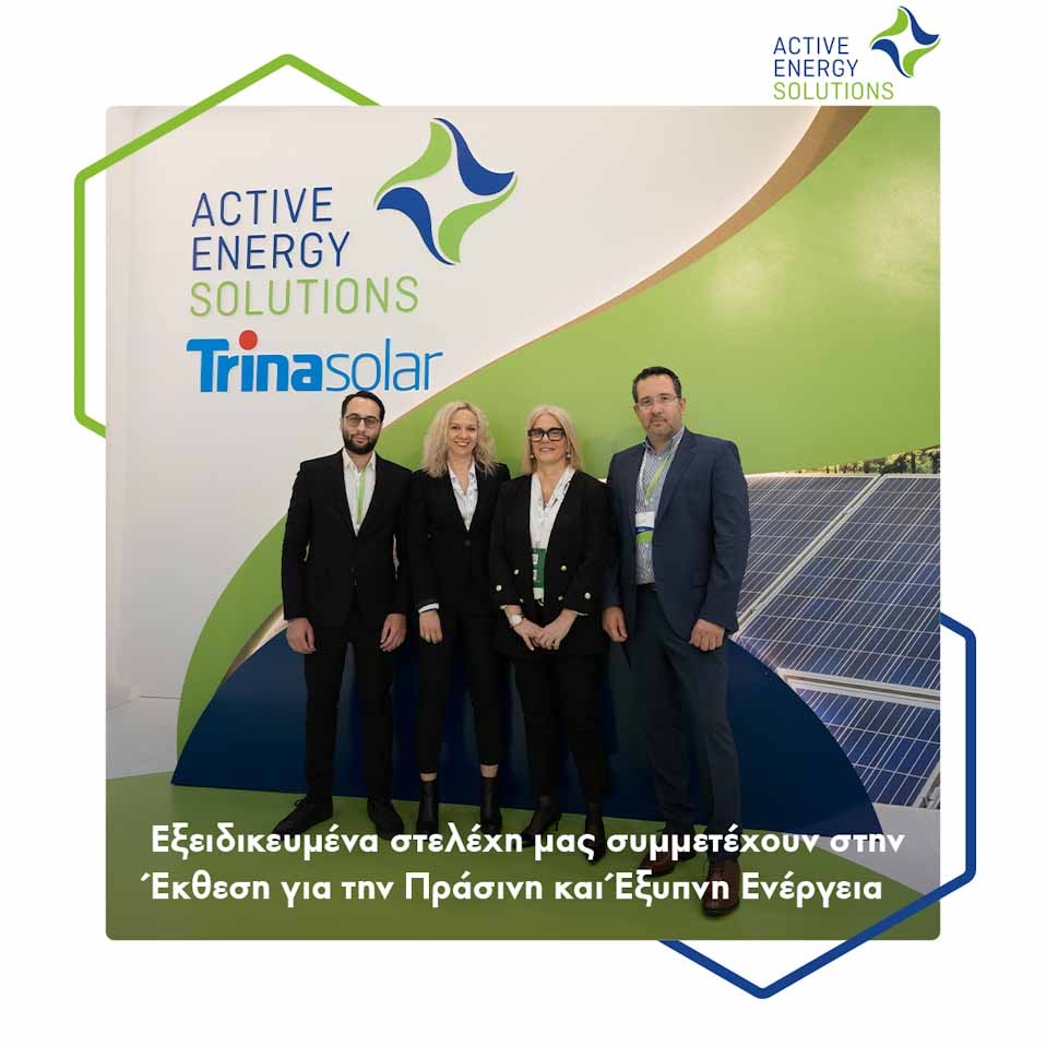 Η Active Energy Solutions, ελληνική εταιρία διανομής και εμπορίας εξοπλισμού φωτοβολταϊκών συστημάτων, συμμετείχε με μεγάλη επιτυχία στην 1η Διεθνή Έκθεση για την Πράσινη & Έξυπνη Ενέργεια «Renewable EnergyTech» της Helexpo που πραγματοποιήθηκε στις 7-9 Μαρτίου 2024στο Διεθνές Εκθεσιακό & Συνεδριακό Κέντρο Θεσσαλονίκης.
