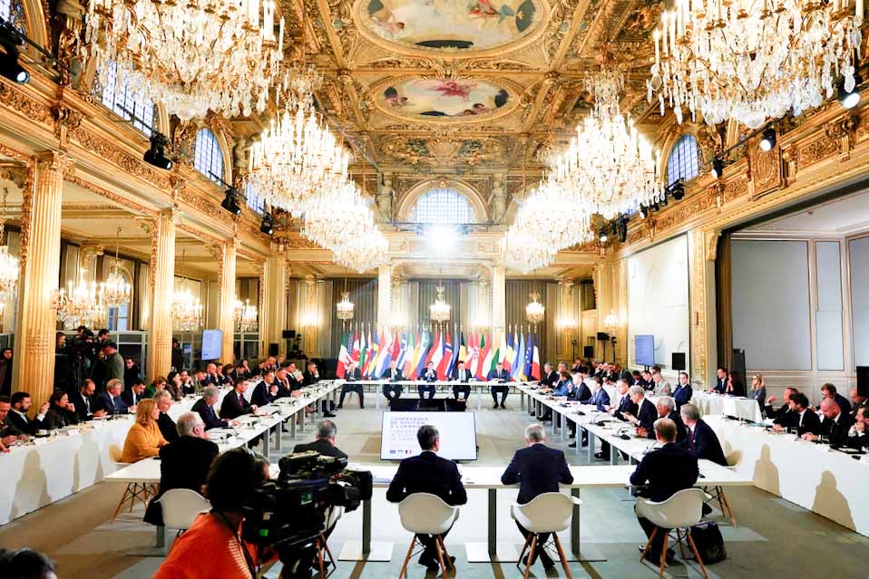 «Πολύς κόσμος που λέει ‘ποτέ’ σήμερα είναι ο ίδιος που έλεγε ‘ποτέ άρματα μάχης, ποτέ αεροσκάφη, ποτέ πύραυλοι μακράς εμβέλειας’ πριν από δυο χρόνια», είπε ωστόσο ο γάλλος πρόεδρος Μακρόν. «Ας έχουμε την ταπεινότητα να διαπιστώσουμε πως συχνά δρούμε με έξι ως δώδεκα μήνες καθυστέρηση. Αυτός ήταν ο σκοπός της αποψινής συζήτησης: όλα είναι δυνατά αν χρησιμεύουν για να επιτύχουμε τον στόχο μας».