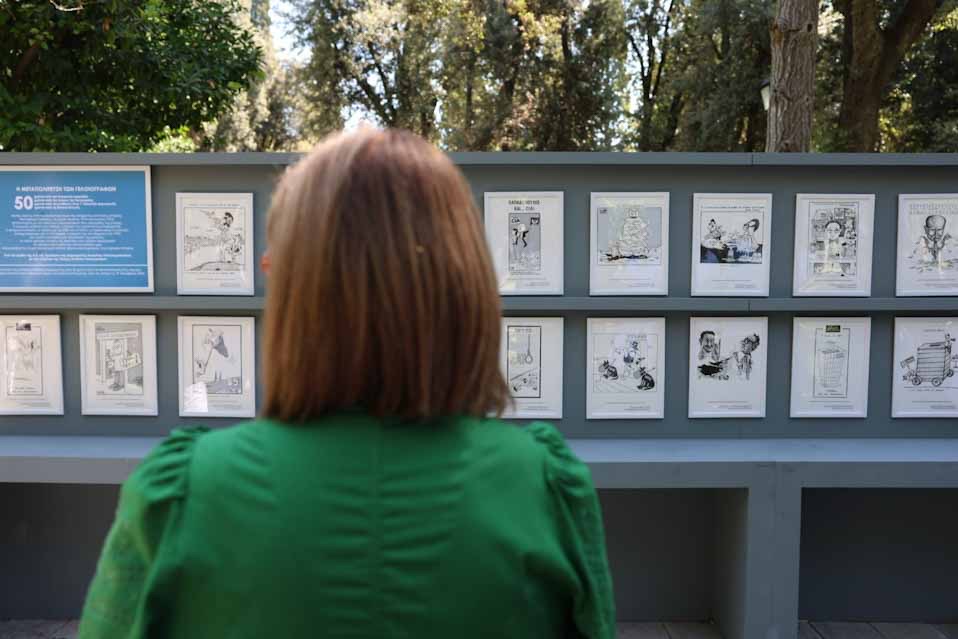 Στις 11:00 έγινε η παρουσίαση 60 έργων γνωστών γελοιογράφων, οι οποίοι αποτύπωσαν με την πένα τους, στις εφημερίδες της εποχής, τον πρώτο χρόνο της Μεταπολίτευσης, από τον Ιούλιο του 1974 έως και τον Αύγουστο του 1975. Η έκθεση πραγματοποιείται με τη συνεργασία της Λέσχης των Ελλήνων Γελοιογράφων.