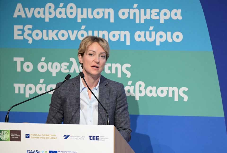 Η Υφυπουργός Περιβάλλοντος και Ενέργειας, κυρία Αλεξάνδρα Σδούκου, τόνισε: «Τα επτά νέα προγράμματα που παρουσίασε το Υπουργείο Περιβάλλοντος και Ενέργειας, σήμερα, θα έχουν ένα ξεκάθαρο, απτό και μετρήσιμο αποτύπωμα τόσο στην τσέπη των ενεργειακών καταναλωτών, όσο και στη μείωση των εκπομπών Αερίων του Θερμοκηπίου, ποσοτικά αποτελέσματα που αναλύονται, εκτενώς, στην παρουσίασή μας. Αλλά δεν πρέπει να ξεχνάμε ότι πέραν από την ποσοτική υπάρχει και η ποιοτική ανάγνωση. Γιατί οι αριθμοί λένε μεν πάντα την αλήθεια, αλλά από πίσω τους βρίσκονται άνθρωποι. Το ποιοτικό αποτύπωμα, λοιπόν, των 900 εκατ. ευρώ που ρίχνουμε, σήμερα, στην αγορά αλλάζει τη ζωή εκατοντάδων χιλιάδων ανθρώπων. Νοικοκυριά ζεσταίνονται πιο πολύ με λιγότερα χρήματα, επιχειρήσεις γίνονται πιο ανταγωνιστικές και αντιμετωπίζουν το αυξημένο ενεργειακό κόστος, ευάλωτοι συμπολίτες μας αποκτούν ισότιμη πρόσβαση στα ενεργειακά αγαθά χωρίς αποκλεισμούς, νέα ζευγάρια αναβαθμίζουν το πρώτο τους σπίτι, παιδιά φιλοξενούνται σε ενεργειακά αναβαθμισμένα κτίρια δημόσιας πρωτοβάθμιας εκπαίδευσης. Αυτό το σαφές κοινωνικό πρόσημο των πολιτικών της Κυβέρνησης αποδεικνύεται και από την παρουσία τεσσάρων ακόμα Υπουργών στη σημερινή εκδήλωση και την έμπρακτη στήριξή τους στα προγράμματα αυτά, τα οποία με διαφορετικό τρόπο και στόχευση το καθένα, επιδιώκουν τον ίδιο σκοπό: να βελτιώσουν τη ζωή της κάθε Ελληνίδας και του κάθε Έλληνα».