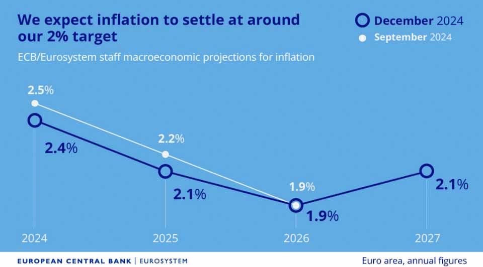 Μετά τη μείωση, το βασικό επιτόκιο της ΕΚΤ (επιτόκιο καταθέσεων) διαμορφώνεται στο 3% από 4% που ήταν στις αρχές του 2024.