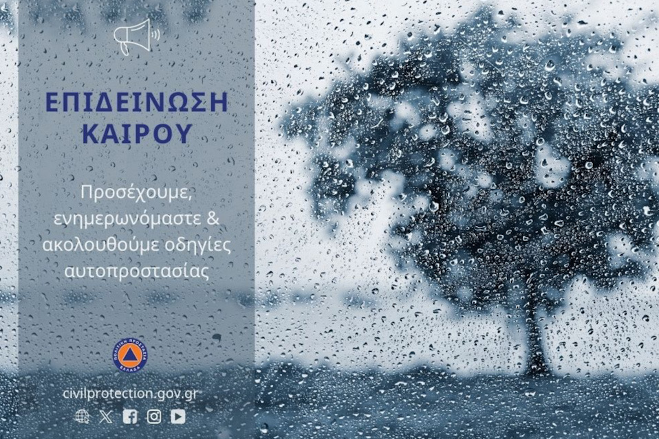 Η Γενική Γραμματεία Πολιτικής Προστασίας (civilprotection.gov.gr) του Υπουργείου Κλιματικής Κρίσης & Πολιτικής Προστασίας, έχει ενημερώσει τις αρμόδιες υπηρεσιακά εμπλεκόμενες κρατικές υπηρεσίες, καθώς και τις περιφέρειες και τους δήμους της χώρας, ώστε να βρίσκονται σε αυξημένη ετοιμότητα πολιτικής προστασίας, προκειμένου να αντιμετωπίσουν άμεσα τις επιπτώσεις από την εκδήλωση των έντονων καιρικών φαινομένων.