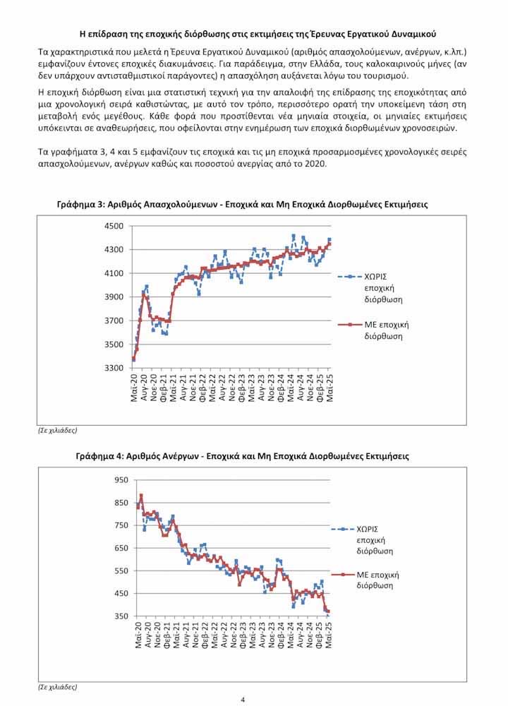 Η Ελληνική Στατιστική Αρχή (ΕΛΣΤΑΤ) ανακοινώνει τις εποχικά προσαρμοσμένες εκτιμήσεις απασχόλησης και