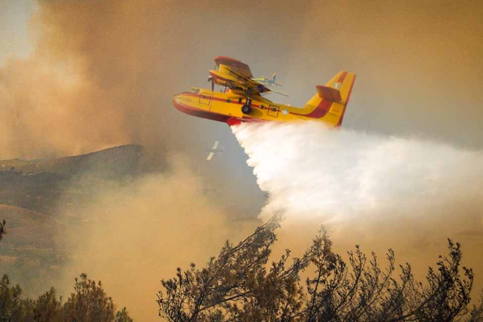 Από αέρος επιχειρούν περιοδικά 33 εναέρια μέσα και συγκεκριμένα 17 ελικόπτερα και 16 αεροσκάφη.