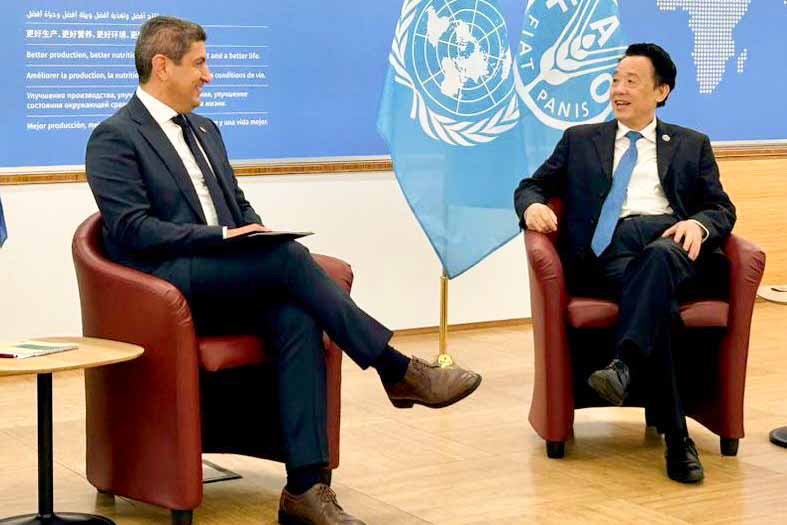 Η διαχείριση των υδάτων στον αγροτικό τομέα, υπό την απειλή της κλιματικής κρίσης, στο επίκεντρο της συζήτησης του ΥπΑΑΤ, Λευτέρη Αυγενάκη με τον Γενικό Διευθυντή του FAO στη Ρώμη