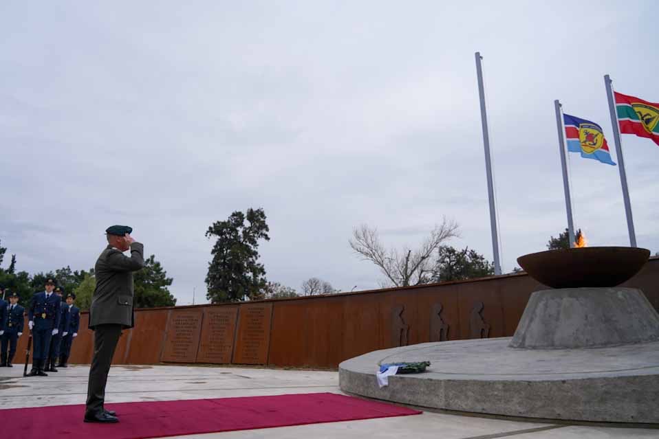Εν συνεχεία πραγματοποιήθηκε κατάθεση στεφάνου στο Μνημείο των Αθανάτων του Έθνους από τον απερχόμενο Αρχηγό και ακολούθησε ενημέρωση του νέου Αρχηγού.