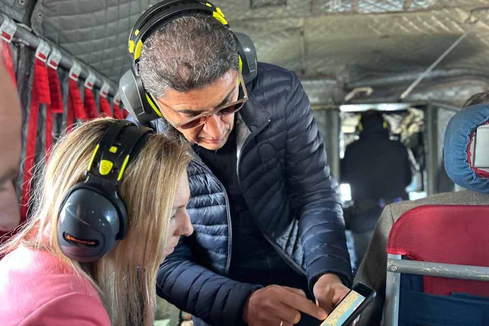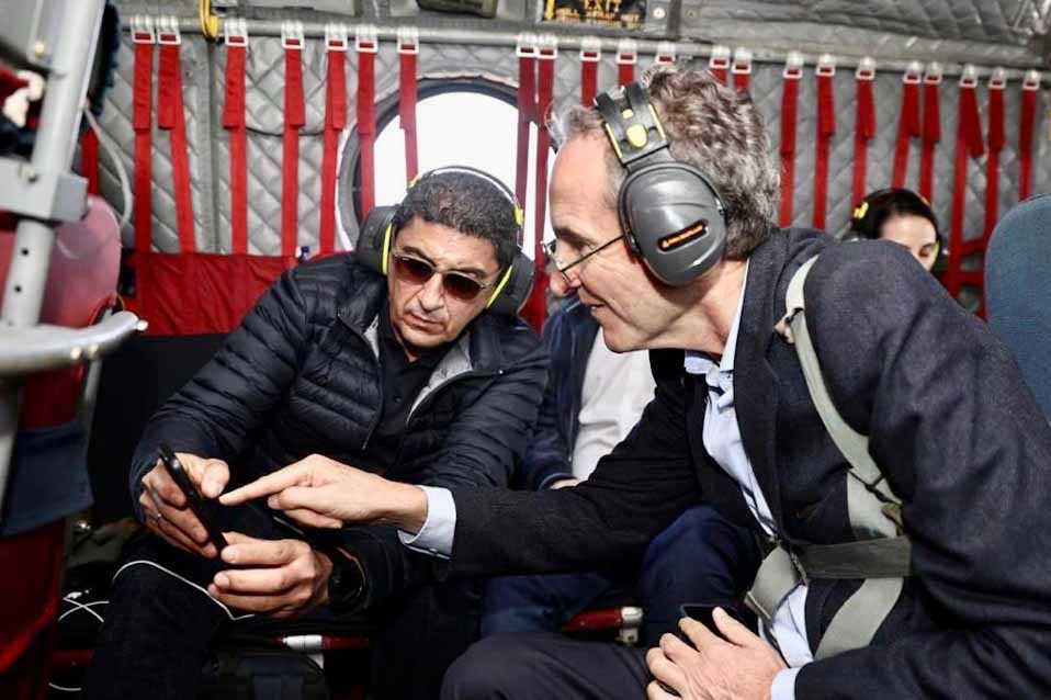 Ο Λευτέρης Αυγενάκης και η ευρωπαϊκή αντιπροσωπεία πέταξαν με ελικόπτερο πάνω από πληγείσες περιοχές και ιδιαίτερα πάνω από την Κάρλα, όπου η καταστροφή είναι μεγάλη, με περίπου 180.000 στρέμματα να παραμένουν πλημμυρισμένα.