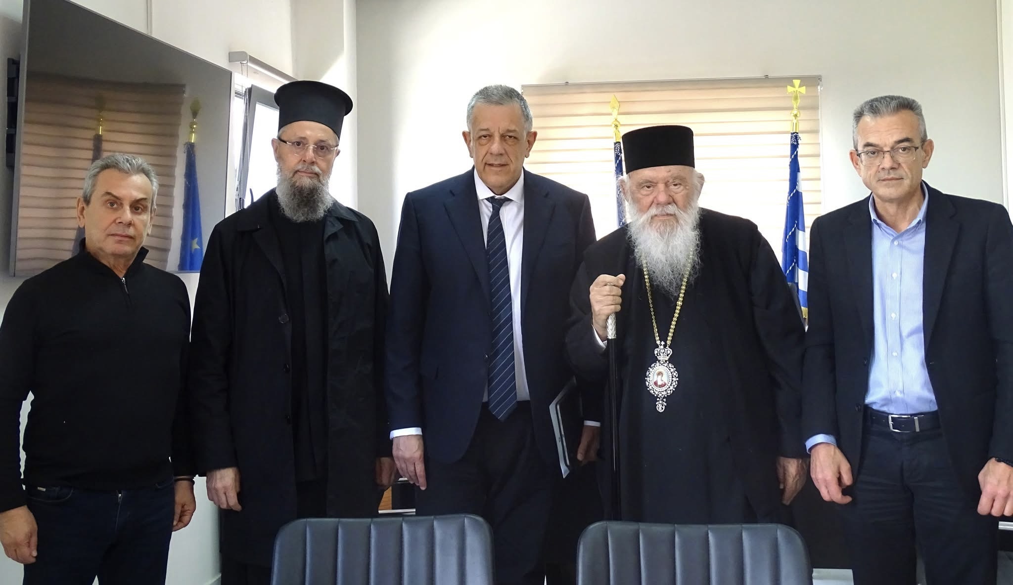 Τον Αρχιεπίσκοπο συνόδευε ο Θεοφιλέστατος Επίσκοπος Τανάγρας κ. Απόστολος, Διευθυντής του γραφείου της Εκκλησίας της Ελλάδος στην Ευρωπαϊκή Ένωση, ενώ στην συνάντηση στον Δήμο Λεβαδέων, παρέστη και ο Σεβασμιώτατος Μητροπολίτης Θηβών, Λιβαδειάς και Αυλίδος κ. Γεώργιος.