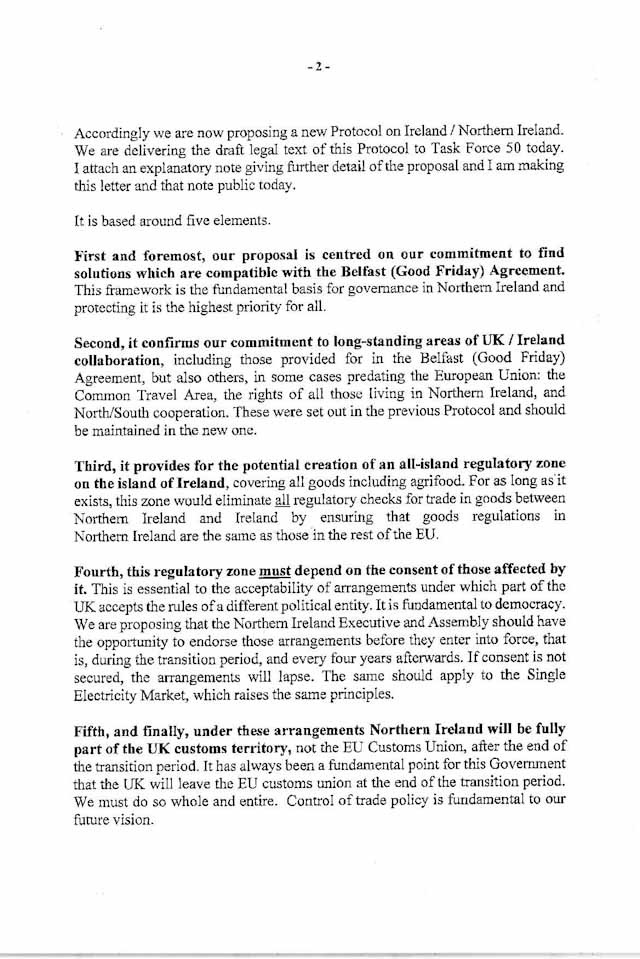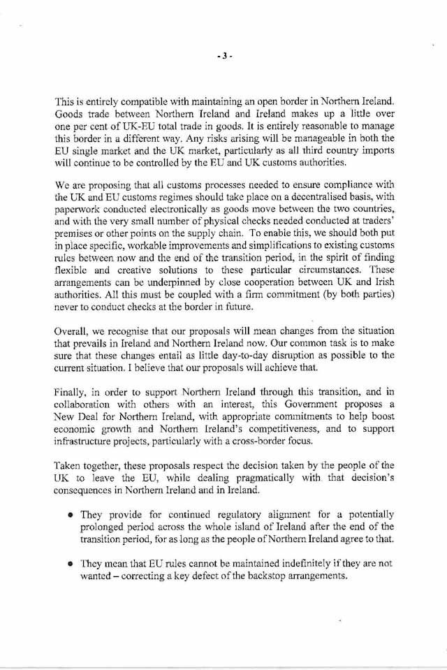 Δημιουργία μιας «οικονομικής ζώνης», που θα επιτρέπει την ελεύθερη κίνηση αγροτοδιατροφικών προϊόντων μεταξύ Βόρειας Ιρλανδίας και Δημοκρατίας της Ιρλανδίας χωρίς ελέγχους στα σύνορα
