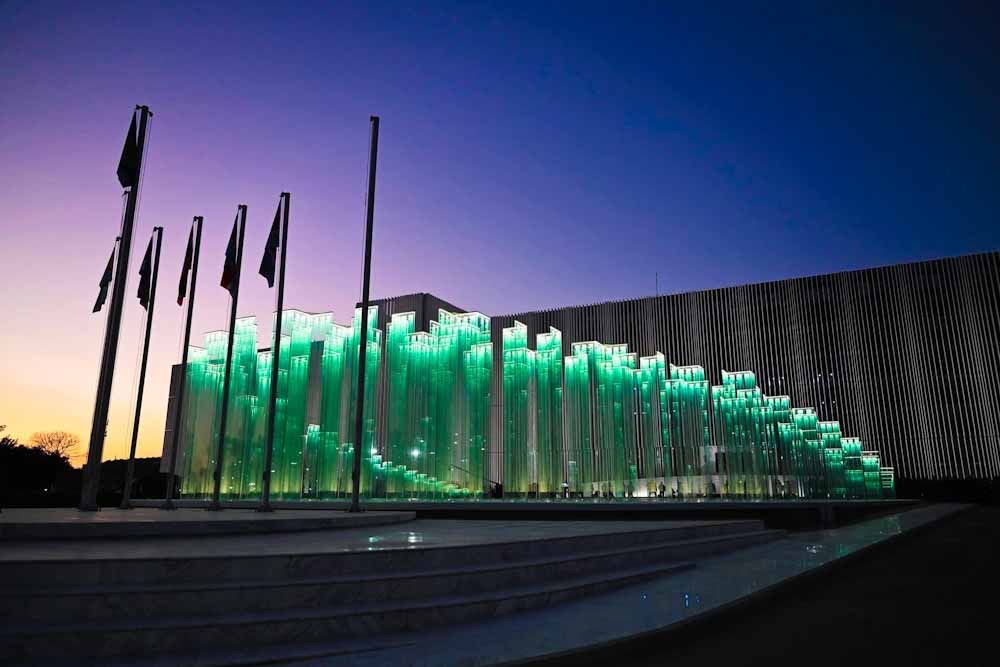 Ευάγγελος Μυτιληναίος: «Η νέα όψη του κτιρίου είναι στραμμένη προς την Κιβωτό της Εθνικής Μνήμης και υποκλίνεται στα 121.692 ονόματα των πεσόντων έθνους» και προσέθεσε ότι «όπως μας διδάσκει η Ιστορία, αν θέλεις ειρήνη ας ετοιμάζεσαι για πόλεμο».
