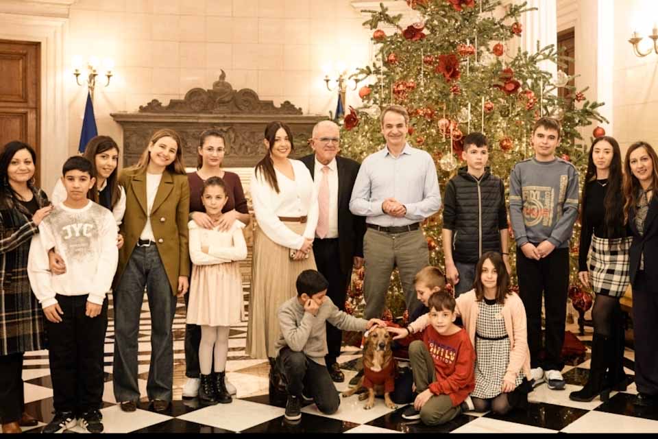 Ο πρωθυπουργός Κυριάκος Μητσοτάκης, μαζί με την κόρη του Δάφνη είχε την ευκαιρία να ανταλλάξει ευχές και δώρα με κορίτσια και αγόρια που φιλοξενούνται στο Παράρτημα Προστασίας Παιδιού και Νέων Αχαΐας – Σκαγιοπούλειο. Τα παιδιά ετοίμασαν στολίδια με ευχές και αφιερώσεις, τα οποία κρέμασαν μαζί με τον πρωθυπουργό στο χριστουγεννιάτικο δέντρο του Μεγάρου Μαξίμου, ενώ γνώρισαν και τον Πίνατ, ο οποίος τους έκανε συντροφιά καθ’ όλη τη διάρκεια της επίσκεψής τους.