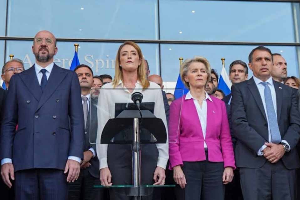 Φόρο τιμής στα θύματα των τρομοκρατικών επιθέσεων στο Ισραήλ απέτισε το Ευρωπαϊκό Κοινοβούλιο, παρουσία της Προέδρου του Ρομπέρτα Μέτσολα, των Προέδρων της Ευρωπαϊκής Επιτροπής Ούρσουλα φον ντερ Λάιεν και του Ευρωπαϊκού Συμβουλίου Σαρλ Μισέλ, καθώς και του Πρέσβη του Ισραήλ στην ΕΕ Χαΐμ Ρέγκεβ.