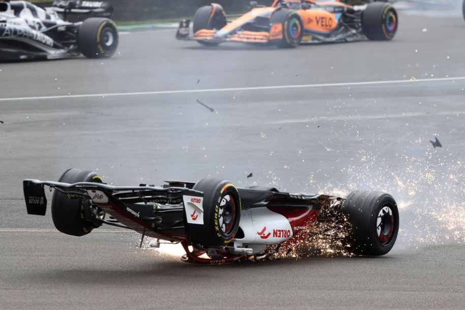 Μόλις στην πρώτη στροφή του γκραν πρι και μετά από σύγκρουση στα μονοθέσια των Γκασλί και Ράσελ, ο τελευταίος χτύπησε την Alfa Romeo του Γκουανζού Ζου, η οποία ανατράπηκε, σύρθηκε αναποδογυρισμένη με υψηλότατη ταχύτητα για μεγάλη απόσταση, προσέκρουσε στα προστατευτικά, πέρασε από πάνω για να σταματήσει στα συρματοπλέγματα ακριβώς κάτω απ’ την εξέδρα!