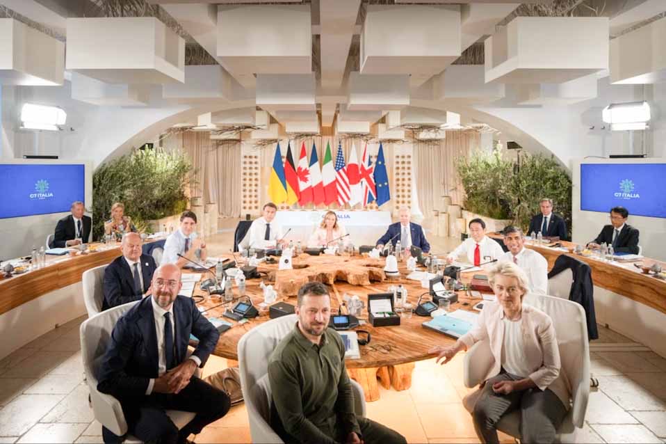 Οι ηγέτες της Ομάδας των Επτά (G7) πιο ανεπτυγμένων χωρών που συναντώνται στην Ιταλία υπόσχονται να “υποστηρίξουν” την Ουκρανία “όσο χρειαστεί”, σύμφωνα με το προσχέδιο της διακήρυξης που είδε το AFP. H G7 επαναβεβαιώνει επίσης “τις συλλογικές προσπάθειές της προκειμένου να αφοπλίσει και να αποξηράνει τη χρηματοδότηση του ρωσικού στρατιωτικοβιομηχανικού συμπλέγματος”.