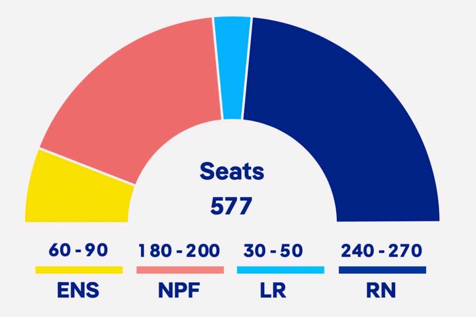 Όμως το αν ο αντιμεταναστευτικός, ευρωσκεπτικιστικός RN θα μπορέσει να σχηματίσει κυβέρνηση, θα εξαρτηθεί από τον αποφασιστικής σημασίας γύρο της επόμενης Κυριακής και από το κατά πόσο τα άλλα κόμματα θα καταφέρουν να εμποδίσουν την Λεπέν συνασπιζόμενα πίσω από αντιπάλους της υποψηφίους σε εκλογικές περιφέρειες σε όλη τη Γαλλία.