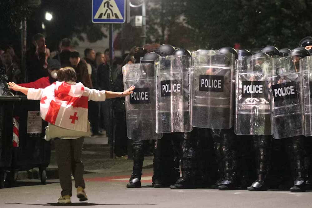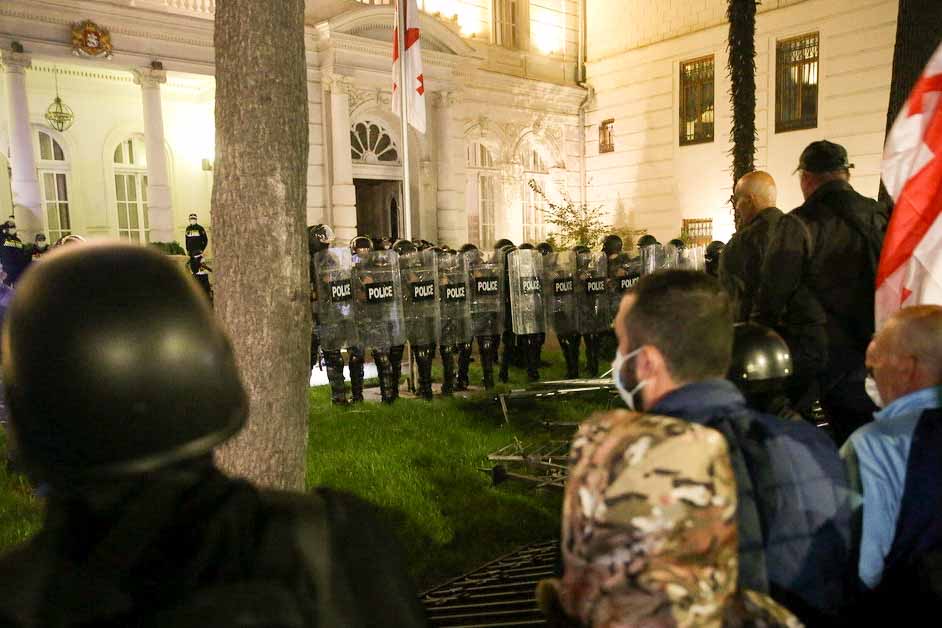 Η γεωργιανή αστυνομία χρησιμοποίησε δακρυγόνα εναντίον των διαδηλωτών που επιχείρησαν να μπουν στο προεδρικό μέγαρο, σύμφωνα με το Γαλλικό Πρακτορείο. Η τοπική τηλεόραση και ένας μάρτυρας, τον οποίο επικαλείται το πρακτορείο Reuters, ανέφεραν ότι οι αστυνομικοί έριξαν σπρέι πιπεριού και νερό υπό πίεση για να απωθήσουν το πλήθος.