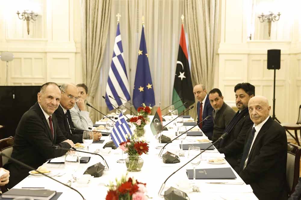 Ο Υπουργός Εξωτερικών, Γιώργος Γεραπετρίτης, υποδέχθηκε σήμερα στο Υπουργείο Εξωτερικών τον Πρόεδρο της Βουλής των Αντιπροσώπων της Λιβύης, Αγκίλα Σαλέχ Ισα.