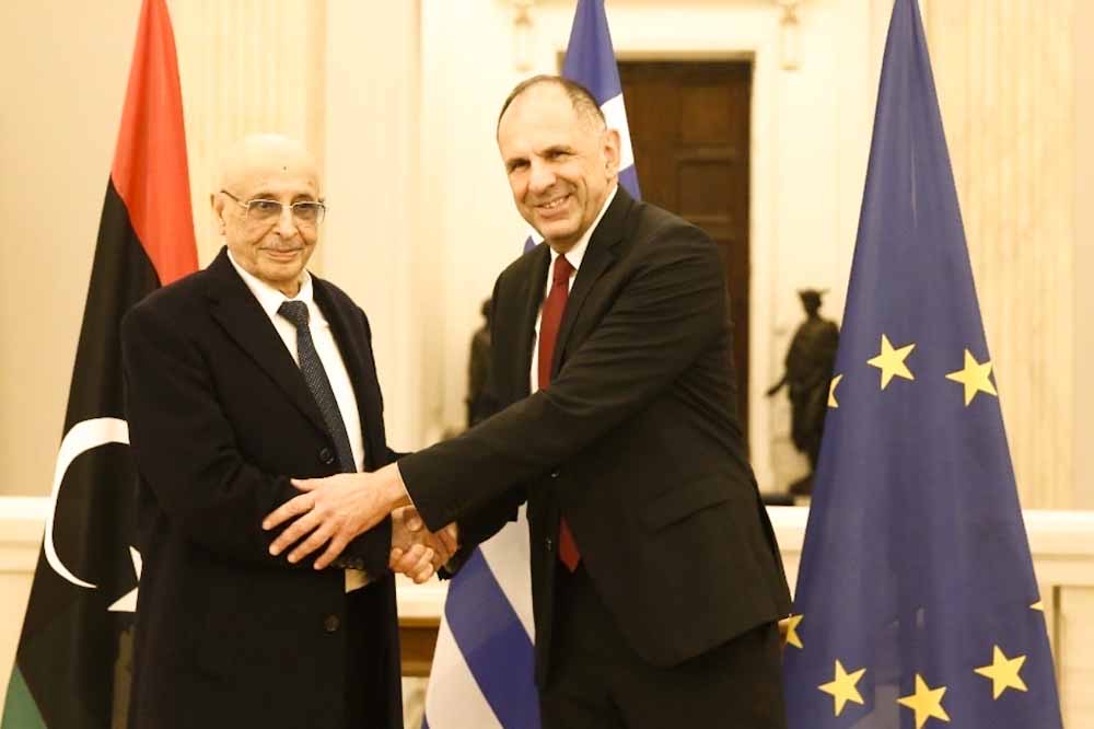 Ο Υπουργός Εξωτερικών, Γιώργος Γεραπετρίτης, υποδέχθηκε σήμερα στο Υπουργείο Εξωτερικών τον Πρόεδρο της Βουλής των Αντιπροσώπων της Λιβύης, Αγκίλα Σαλέχ Ισα.