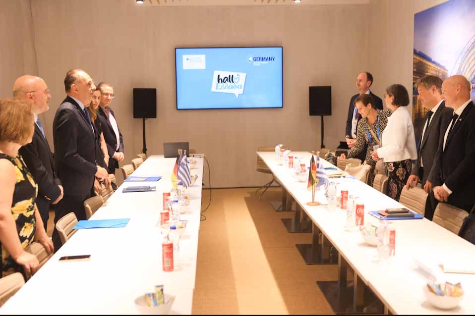 Η συνάντηση έγινε στο περίπτερο της Γερμανίας στην 88η ΔΕΘ, όπου είναι τιμώμενη χώρα και όπως είπε ο κ. Γεραπετρίτης αυτό «αποτελεί ακριβώς την απόδειξη των εξαιρετικών διμερών σχέσεων που έχουμε με την Ομοσπονδιακή Δημοκρατία της Γερμανίας».