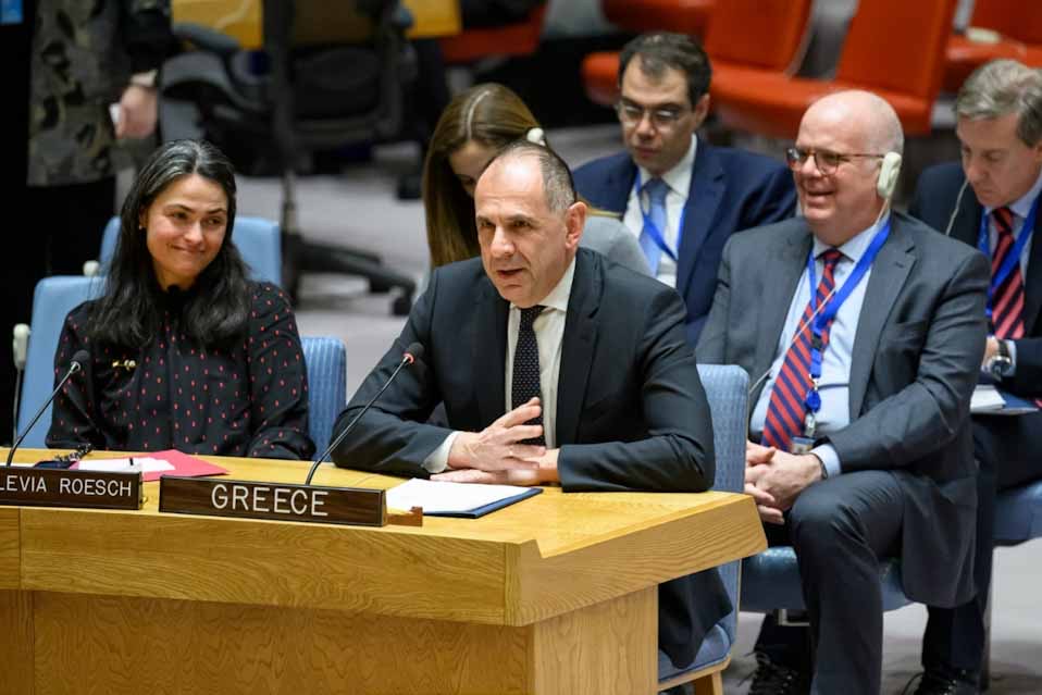 «Χρειαζόμαστε ένα όραμα παγκόσμιας αλληλεγγύης και διαγενεακής βιωσιμότητας», η υλοποίηση του οποίου θα γίνει μέσω «μιας παγκόσμιας διακυβέρνησης βασισμένης στην ηθική, σε κανόνες και το δίκαιο επιμερισμό των βαρών μεταξύ των κρατών», τόνισε ο υπουργός Εξωτερικών Γιώργος Γεραπετρίτης στην ομιλία του για την κλιματική αλλαγή και την επισιτιστική ανασφάλεια στο πλαίσιο Συνεδρίασης Υψηλού Επιπέδου του Συμβουλίου Ασφαλείας του ΟΗΕ στη Νέα Υόρκη.